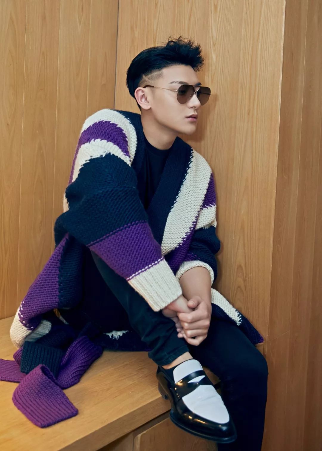 彩色的毛衣真是能无限放大人的多样魅力,黄景瑜这款紫色的粗线麻花毛衣真是开辟了我对这种香芋紫的新大陆,一道一道的粗线尽显温馨,麻花状交错的图纹更是让人觉得魅力无限,帅气男孩真的更显成熟魅力风尚,像冬日里沁人心脾的薰衣草般光是欣赏就让人心旷神怡。